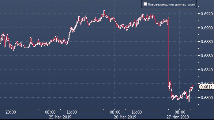 Новозеландский доллар обрушился на максимальную за семь недель величину после того, как центральный банк заявил, что следующим изменением процентных ставок, вероятно, будет их снижение. Тем самым регулятор присоединился к ФРС, РБА и ЕЦБ, которые ранее также смягчили свою риторику на фоне поступающих данных о замедлении темпов роста мировой экономики вследствие усиления протекционизма после прихода к власти Трампа. Австралийский доллар и фунт также снизились.