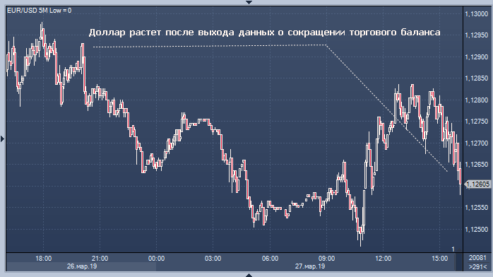 Доллар поддержали данные о неожиданном сокращении дефицита внешнеторгового баланса США в январе 2019 года до $51.1 млрд с пересмотренных $59.9 млрд в декабре. Декабрьский показатель и после пересмотра остался максимальным с октября 2008 года. Аналитики в среднем ожидали менее значительного снижения дефицита в январе — до $57 млрд с ранее объявленных $59.8 млрд в декабре.