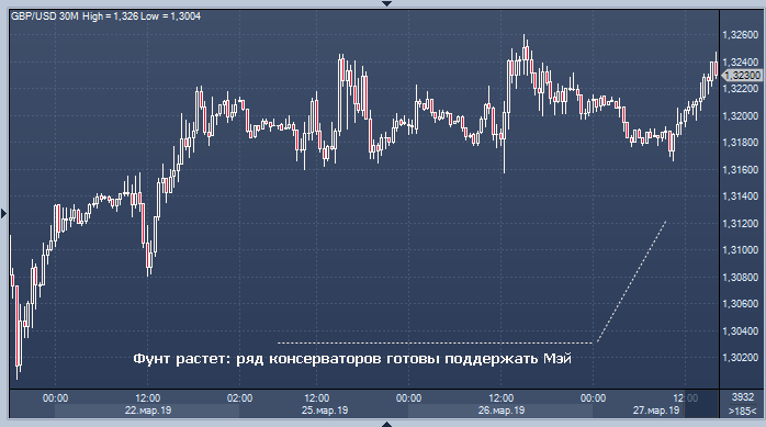 Фунт отыграл потери на фоне веры спекулянтов в позитивный исход Брексита. Законодатели, выступающие против ЕС в рамках Консервативной партии, дали понять Терезе Мэй, что могут поддержать ее сделку, а не рисковать отменой Brexit после того, как парламент заполучил контроль над процессом в начале этой недели. Тем не менее, это может произойти ценой отставки Мэй. Она собирается выступить и ответить на эти вопросы днем, а затем на совещании рядовых консервативных законодателей в 17:00.