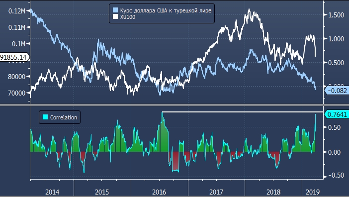 Однако германские облигации предлагают альтернативу. Это очень ликвидный рынок, который также тесно связан с динамикой турецких активов. Расчеты экспертов Bloomberg подтверждают, что доходность немецких облигаций и фондовый рынок Турции имеют тесную взаимосвязь.