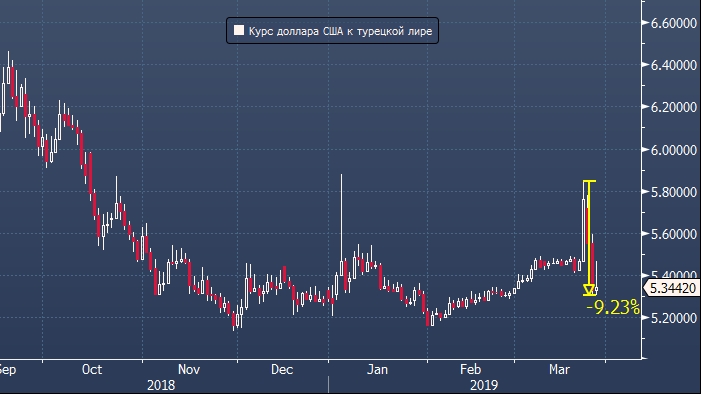 Курс лиры за последние 4 торговых дня показал очень высокую волатильность. После резкого ослабления к доллару в пятницу турецкая лира стремительно выросла. Диапазон колебаний за этот период составил чуть более 9%.