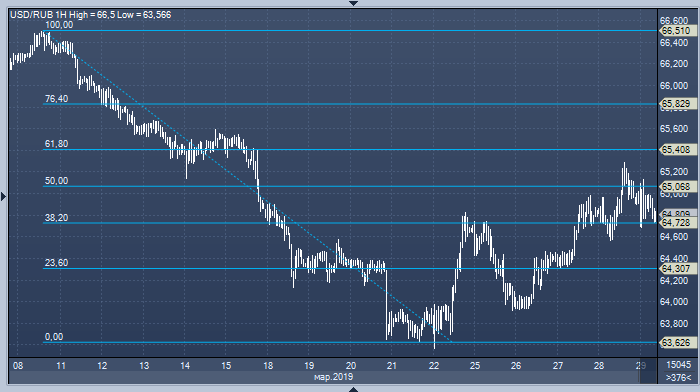 В последние дни, после заметного снижения в период с 11 по 21 марта, курс доллара к рублю продемонстрировал коррекционный рост. К вчерашнему вечеру пара отыграла около 61.8% предыдущего снижения.