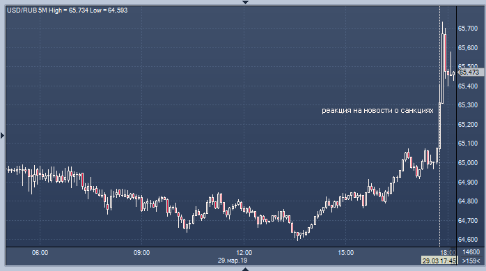 Курс доллара к рублю подскочил более чем на половину рубля и достиг отметки в 65.73 после сообщений о том, что Государственный департамент и Минфин США подготовили новый пакет санкций и представили его для одобрения Белому дому. Источники, знакомые с ситуацией, сообщили агентству Bloomberg, что санкции являются ответом на события 2018 года в британском Солсбери и включают в себя меры в отношении российского банковского сектора.