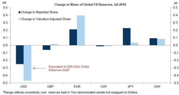 По подсчетам экспертов Goldman Sachs, в четвертом квартале мировые ЦБ продали примерно $50 млрд «резервных» долларов.