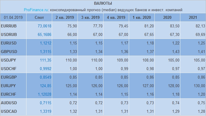 - Доллар к рублю на 2 кв 2019: было в мартовском прогнозе - 66.50, стало в апрельском прогнозе - 66.00