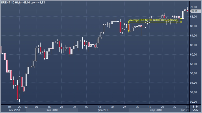 Как известно, нефть цена на нефть Urals устанавливается как премия или дисконт к цене североморского сорта Brent, который является бенчмарком. Средняя рыночная цена Brent в марте составила $66.87 за баррель, то есть на 91 цент (1.37%) выше той цены, которую Минэкономразвития подсчитало, как среднюю для Urals.