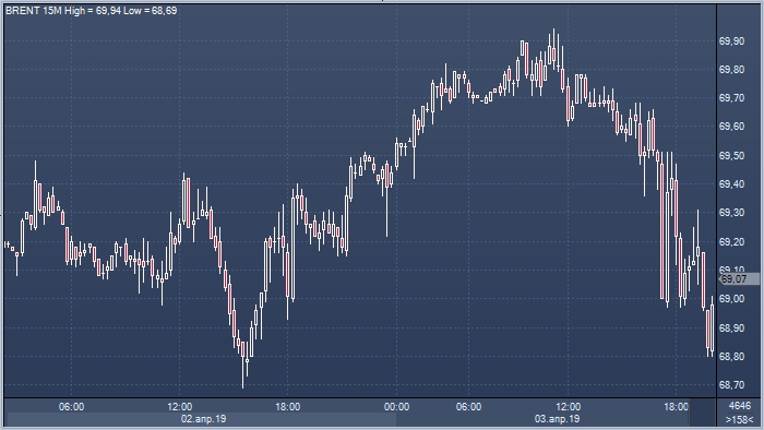 Еще в середине торгового дня в среду 3 апреля нефть Brent предпринимала активные попытки проверить на прочность психологический уровень $70 за баррель. Максимум был сформирован на $69.95. Однако вечером цены опустились ниже $69 за баррель, поскольку отчет Минэнерго отразил неожиданно резкий рост запасов нефти (вопреки прогнозам), а объемы добычи в США установил новый абсолютный исторический рекорд — 12.2 млн баррелей в день.