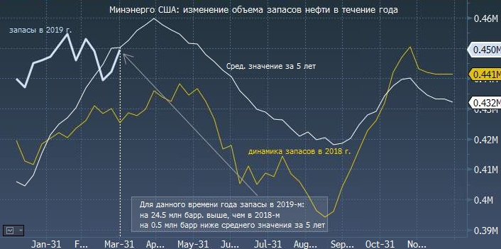 На прошлой неделе ведомство опубликовало статистику по состоянию на 22 марта. Запасы сырой нефти увеличились на 7.24 млн баррелей, а добыча установила новый рекорд 12.2 млн баррелей в день.