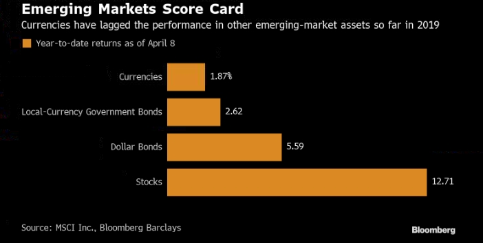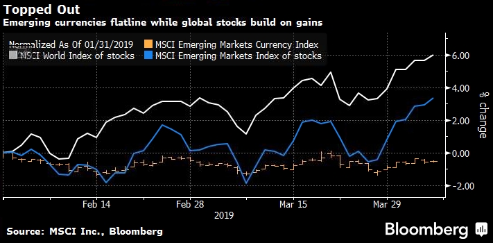 После десятилетия дешевых денег, полученных от центральных банков богатейших стран мира, управляющие фондами развитых стран, возможно, в значительной степени насытились валютами развивающихся стран. Это явление, которое аналитики Института международных финансов, в том числе главный экономист Робин Брукс, называют «навес позиционирования EM». Вот почему «голубиная опора» ФРС в этом году, которая помогла подстегнуть рост во всех активах, от акций до корпоративных облигаций, не оказывает такого большого влияния на некоторые обменные курсы, утверждают они.