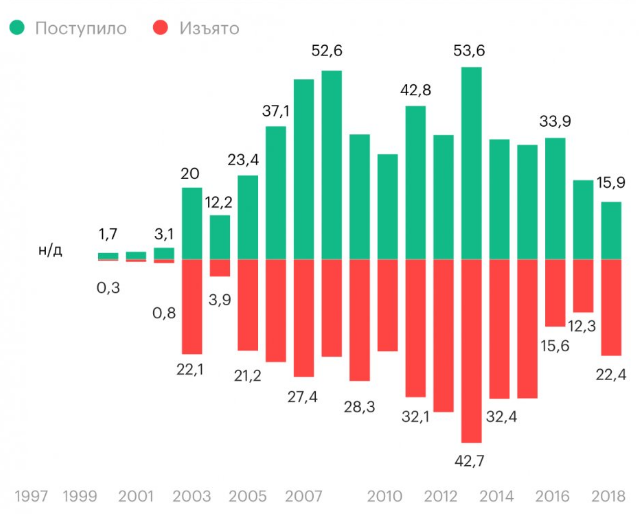 Отток иностранных инвестиций составил $22.4 млрд, в приток — лишь $15.9 млрд, что оказалось в два с лишним раза меньше среднего показателя за последнее десятилетие. Об этом пишет РБК, ссылаясь на данные ЦБ РФ.