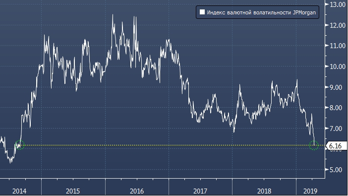 Показатели месячной подразумеваемой волатильности курса доллара, а также евро и иены снизились после комментариев главы Европейского центрального банка Марио Драги и публикации протокола мартовского заседания ФРС США (оба события были в среду — примечание ProFinance.ru). В результате индекс волатильности валютных курсов, который рассчитывается инвестиционным банком JP Morgan, упал до нового минимума с 2014 года.