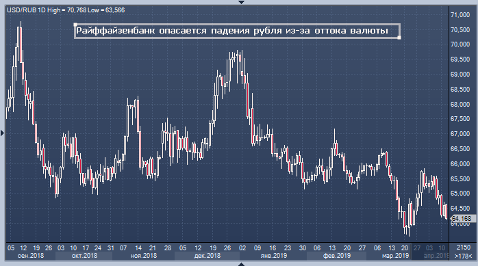 В банке беспокоятся по поводу большого количества иностранных позиций в таком инструменте как валютный своп. Отток капитала может оказатьсь как всегда резким и неожиданным. Райффайзенбанк ожидает усиление оттока валюты из России во втором квартале. Это приведет к ослаблению курса рубля даже при сохранении текущего высокого уровня цен на нефть, говорится в обзоре банка. На рынке однодневного валютного свопа с начала года высокий спрос на рублевую ликвидность. Высокая рублевая ставка по свопу одновременно с низкой волатильностью на валютном рынке могла привлечь нерезидентов; carry trade может составлять до 5.5%, пишут аналитики банка.