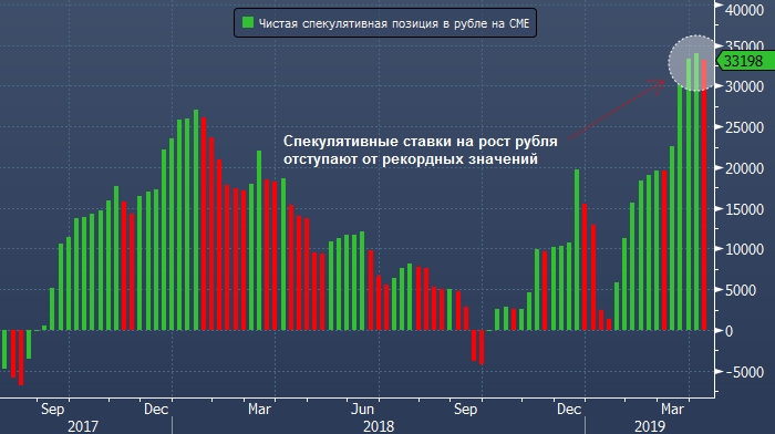 На неделе до 9 апреля чистые спекулятивные ставки на рост курса рубля на Чикагской товарной бирже (CME) отступили от рекордных значений и снизились на 2.4%. Таковы последние данные американской Комиссии по торговле товарными фьючерсами (CFTC).