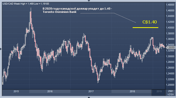 Он считает, что к концу этого года канадский доллар ослабнет до 1.36 канадских долларов за доллар и до 1.40 канадских долларов в 2020 году. В понедельник луни достиг 1.3298 канадских доллара.