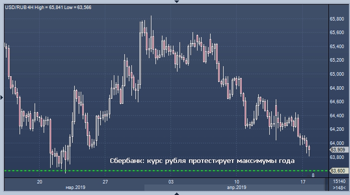 Рубль может протестировать уровень 63.6 рубля за доллар, то есть максимальную к доллару отметку с начала года, пишут в сегодняшнем аналитическом обзоре эксперты Sberbank CIB.