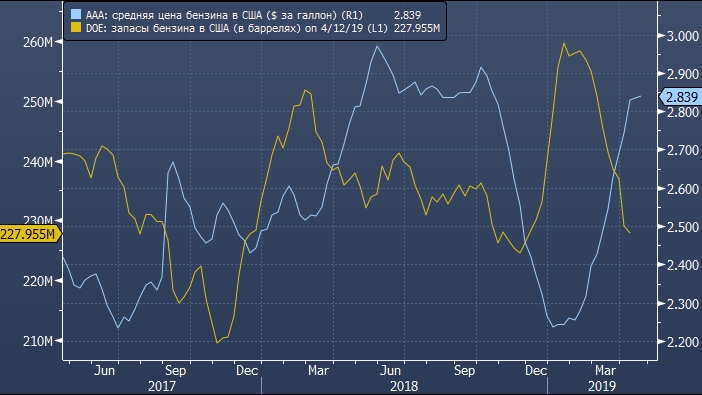 У Дональда Трампа есть повод для недовольства — в преддверии автомобильного сезона в США запасы бензина резко упали, а цены на него подскочили более чем на 25% и приближаются к болезненной для американских потребителей отметки в $3 за галлон. Сложившаяся ситуация дает повод для тревоги быкам по нефти, так как цены на «чёрное золото» находятся на максимальных с осени прошлого года уровнях, и очевидно, что в дорогом бензине Дональд Трамп будет винить ОПЕК, а отнюдь не санкции в отношении Ирана и Венесуэлы, усложнившие жизнь американским НПЗ.