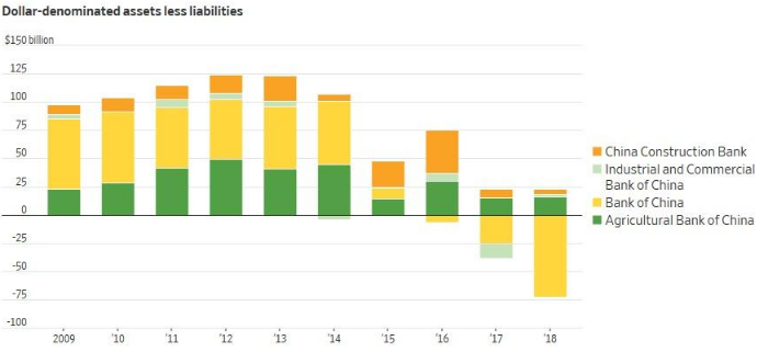 Остальные три крупнейших банка Поднебесной завершили 2018 год с положительным балансом чистых долларовых обязательств, однако профицит американской валюты на их балансе в последние годы заметно сократился.