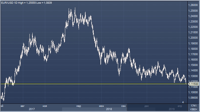 Курс доллара в ходе американской торговой сессии в среду 24 апреля установил новый максимум 2019 года к евро на уровне 1.1153. Последний раз такой курс можно было наблюдать 23 июня 2017 года, поэтому указанная отметка в паре EURUSD также является новым 22-месячным минимумом.