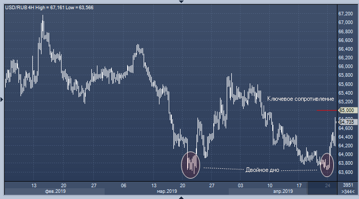 Курс доллара к рублю сформировал техническую фигуру «двойное дно» в области поддержки 63.7, после чего начал мощную коррекцию вверх, отмечают эксперты «БКС Брокер». Они напоминают, что считали более вероятным прорыв пары ниже указанной поддержки, однако снижение глобального аппетита к риску, общее укрепление американской валюты и рост санкционных рисков внесли в ситуацию свои коррективы.