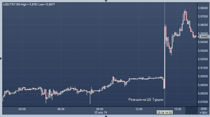 Турецкая лира довольно часто оказывается главным аутсайдером валютного рынка, вот и сегодня она лидирует по темпам снижения относительно доллара и евро с результатом более чем в 1.5% и 1.2% соответственно. Повод для активизации продавцов дал центральный банк Турции, который сохранил ключевые ставки на прежних уровнях, однако в сопроводительном заявлении отказался от упоминаний о готовности продолжить ужесточение монетарных условий при необходимости и вместо этого сообщил, что дальнейшие действия будут призваны обеспечить удержание инфляции на намеченном уровне. Подобное смягчение риторики стало неожиданностью для участников рынка, что на фоне новостей о том, что валютные резервы Турции на прошлой неделе сократились еще на $1.8 млрд до $26.9 млрд, обеспечило импульс для рывка USDTRY к максимальным уровням с октября 2018 в районе 5.9781. Аналитики полагают, что в ближайшем будущем движение может получить развитие поскольку снижение резервов носит устойчивый характер и в этих условиях изменение позиции центробанка дает повод думать, что он может оказаться вынужден отдать лиру на волю рыночных сил.
