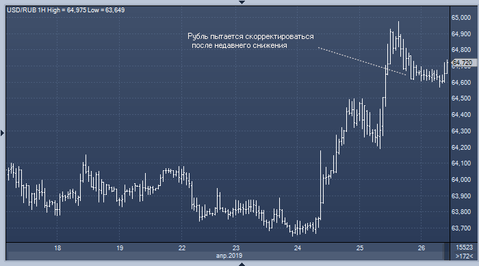 Впрочем, рубль находится в довольно уязвимом положении: налоговый период остался позади, а из-за предстоящих майских праздников Минфин покупает валюту более активно, чем обычно. Кроме того, перед длинными выходными многие участники рынка предпочитают конвертировать рубль в твердую валюту.