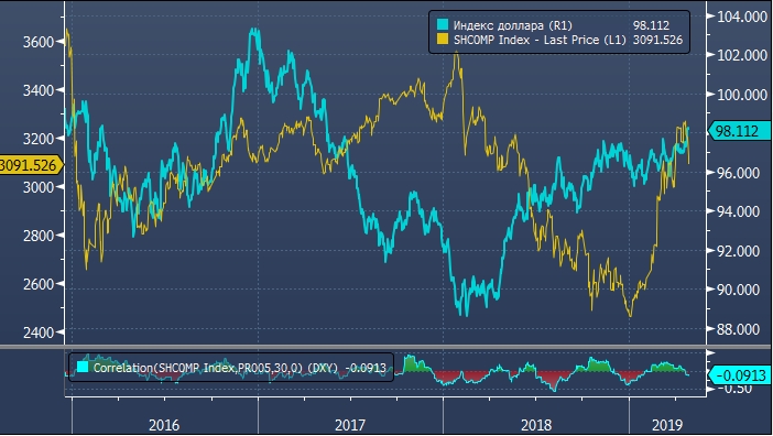 Как правило, китайские акции растут тогда, когда курс доллара снижается, и наоборот. Статистически у этих активов обратная корреляция.
