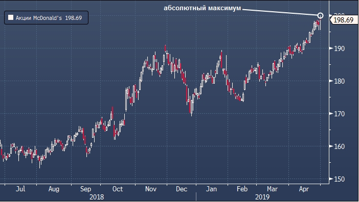 Чистая прибыль McDonald’s в 1 квартале 2019 г. снизилась до $1.33 млрд или $1.72 на акцию. В той же квартальной четверти годом ранее чистая прибыль компании составила $1.38 млрд или $1.72 на акцию.