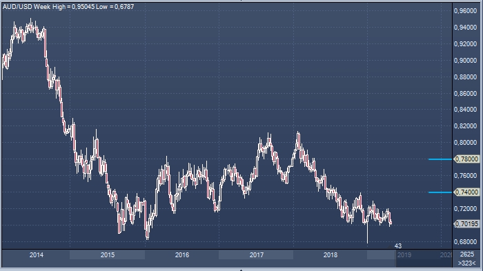 На прошлой неделе курс AUDUSD упал до самого низкого уровня с начала 2016 года и достиг 0.6988 (без учета кратковременного резкого падения в январе).