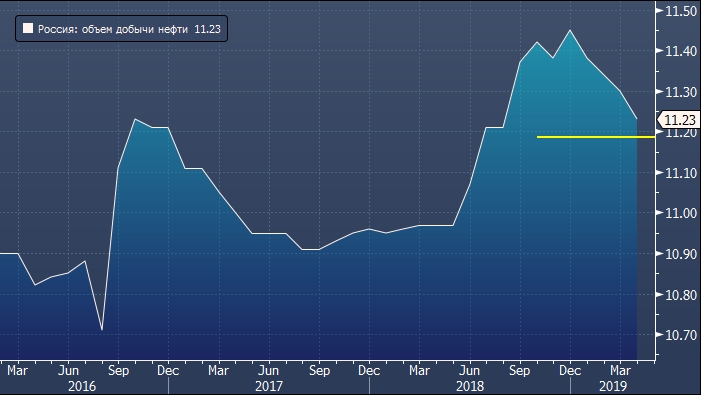 Несмотря на то что цели не выполнены, страна ускоряет темпы снижения производства. В марте российская среднесуточная добыча составляла 11.303 млн баррелей.