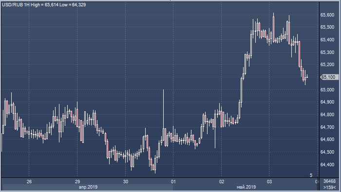 Вечером в пятницу 3 мая рубль укрепляется к доллару в тандеме с другими активами.