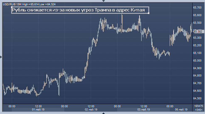 Российский рынок акций и рубль снижаются на фоне новых протекционистских угроз Трампа в адрес Китая, с которым США уже 5 месяцев пытаются договорится, чтобы выйти на торговое соглашение и отказаться от ранее введенных пошлин. Американский президент Дональд Трамп заявил, что увеличит пошлины на ряд китайских товаров, что спровоцировало распродажи на азиатских биржах. Снижаются акции и цены на нефть. Это оказывает значительное давление на российские активы. Тема торговых противоречий США и Китая вновь выходит на первый план, считает Михаил Поддубский из Промсвязьбанка.