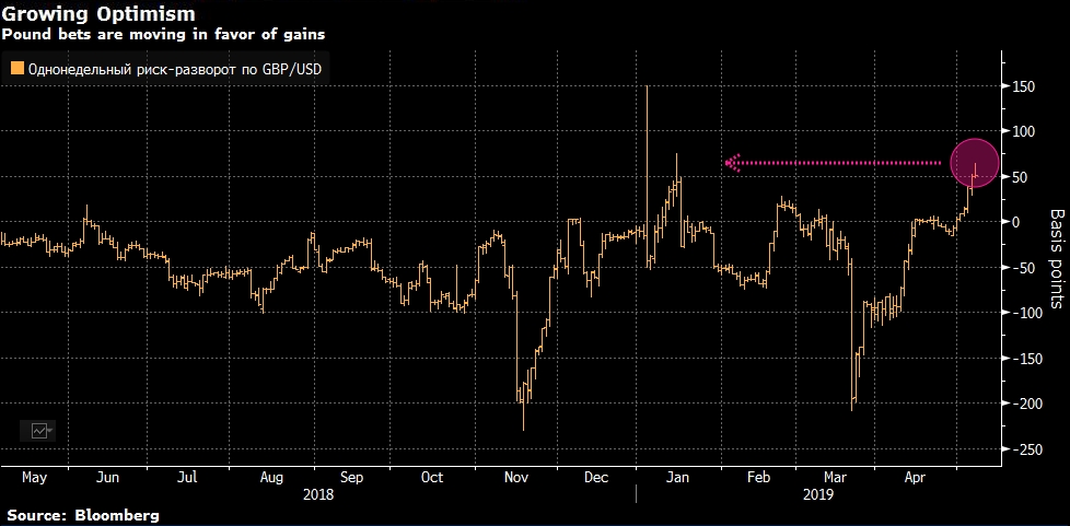 Трейдеры по фунту стали более оптимистичны в отношении перспектив Brexit, поскольку правительство и оппозиционная лейбористская партия проводят встречи в попытке договориться. Однонедельные развороты риска по паре фунт/доллар, показатель позиционирования на рынке, сигнализируют, что инвесторы стали наиболее оптимистичны по отношению к фунту почти за пять месяцев. По словам стратегов MUFG и Mizuho Bank Ltd., вероятность того, что переговоры между лейбористами и правящей партией консерваторов закончатся успешно, составляет лишь один шанс из трех, но если это будет именно так, фунт получит импульс к росту. «Участники рынка скептически относятся к перспективе заключения межпартийной сделки», — сказал Ли Хардман, стратег в MUFG.
