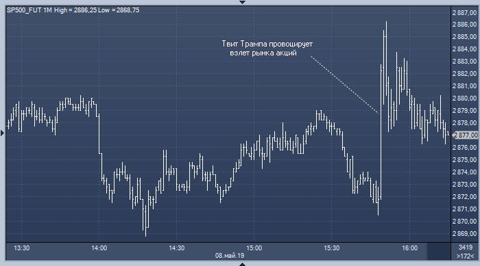 Впрочем, рост рынка акций продолжался недолго. Почти сразу после твитов президента США офис Торгового представителя страны сообщил о том, что в пятницу повышаются пошлины на китайские товары объемом $200 млрд.