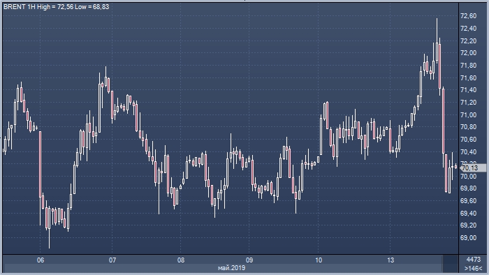 Котировки на рынке нефти демонстрируют негативную динамику на американских торгах в понедельник 13 мая. Brent падает на 0.61% до $70.19 за баррель, при этом WTI дешевеет на 0.99% до $61.04 за баррель.