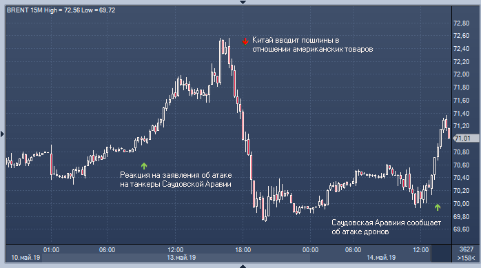 Власти Саудовской Аравии заверили, что никаких перебоев ни с производством, ни с поставками нефти не произошло, но цены на нефть отреагировали достаточно активным ростом — если днем брент тестировала $70 за баррель, то теперь держится в районе $71.11, обозначив максимумы сессии около $71.36 и восстановив заметную часть потерь, понесенных вчера на новостях об эскалации торговой войны США и Китая.