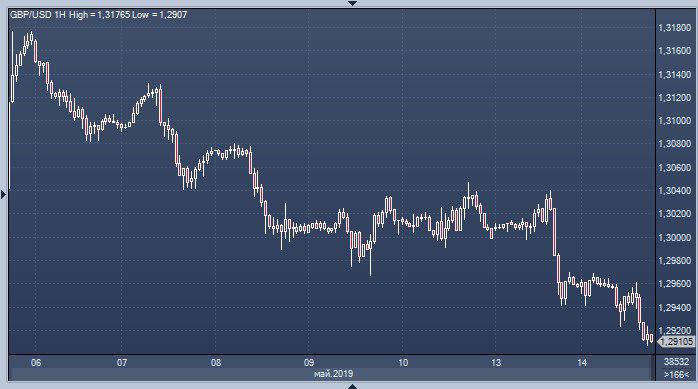 Фунт обесценился на торгах во вторник 13 мая. Курс GBPUSD торгуется вблизи 2-недельного минимума на уровне 1.2905 — худших значениях с начала мая. Давление на стерлинг оказала статистика по Великобритании.