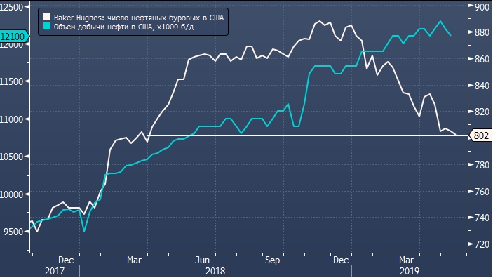 Таким образом, нефтяные буровые упали до 13-месячного минимума. На предыдущей неделе (до 10 мая) число нефтяных установок сократилось на 2 до 805 шт.