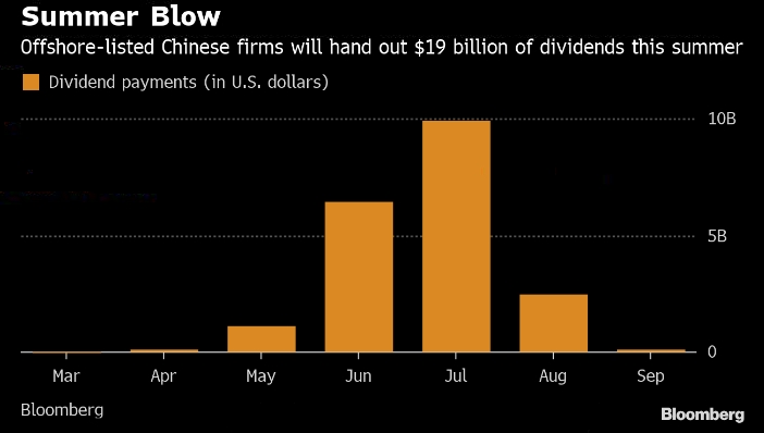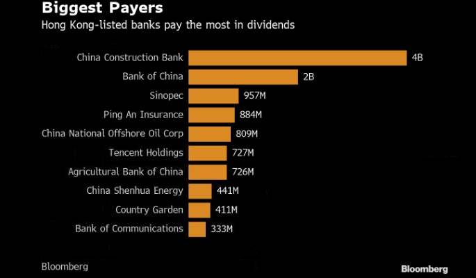 Находящиеся в Гонконге банки являются одними из крупнейших плательщиков. China Construction Bank Corp. выплатит 4.2 млрд долларов в июле, а Bank of China Ltd. Выплатит 2.1 млрд долларов, согласно расчетам Bloomberg, основанным на биржевых заявках.