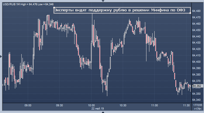 Кроме аукционов внимание игроков рублем сегодня привлечет публикацией протоколов ФРС. Политики США, возможно, «слегка перестарались», повысив процентные ставки в декабре, хотя пока преждевременно говорить о снижении ставки, сказал президент ФРС Сент-Луиса Джеймс Буллард. Федеральная резервная система 30 апреля — 1 мая сохранила ставку на уровне 2.25–2.5% годовых, а глава ФРС Джером Пауэлл заявил, что не видит оснований для изменения ставки в любом направлении. Протокол заседания Федрезерва будет обнародован в 21:00 мск в среду.