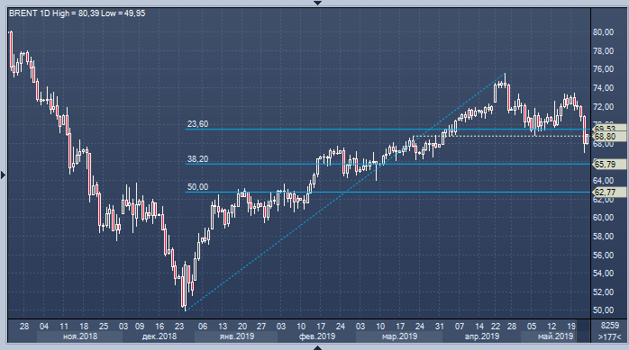 Нефть отскочила выше после серьезной распродажи в ходе торгов в четверг, однако трейдеры констатируют, что своему восстановлению она в большей степени обязана фиксации прибыли по краткосрочными коротким позициям, нежели оживлению в рядах быков. «Чёрное золото» не спешит возвращаться выше пробитой поддержки в области $69.53/$68.80 (23.6% от роста с декабря/минимум апреля), и аналитики ING предупреждают о рисках развития коррекции в условиях, когда инвесторы забыли о жесткости текущих условий на рынке и сфокусировались на возможных негативных последствиях торговой войны США и Китая. В банке, однако, предупреждают, что дальнейшее значительное снижение цен на нефть может стать неверным сигналом для ОПЕК и её союзников. В ING считают, что в сложившихся на рынке нефти условиях потребности в сохранение ограничений на добычу во втором полугодии нет — в третьем квартале и так намечается относительно большой дефицит, и продление сделки ОПЕК+ усугубит ситуацию. В ING предупреждают, что при таком развитии событий им придется пересмотреть свой прогноз по цене нефти брент на третий квартал, который в настоящее время предполагает стоимость барреля на уровне в $69.