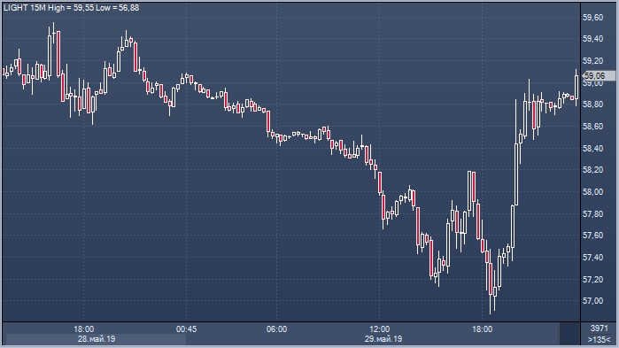 Котировки WTI завершают торговлю в среду 29 мая падением на 0.12% до $59.07 за баррель. При этом Brent дешевеет на 0.70% до $69.62 за баррель.