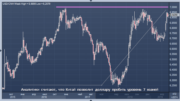 Чи Ло, старший экономист из Китая в отделе управления активами BNP Paribas SA сказал, что слабый юань, когда доллар окажется выше 7, может подтолкнуть Пекин и Вашингтон к тому, чтобы вернуться за стол переговоров. Дело в том, что такой пробой может вызвать падение валюты ко всем аналогам в регионе и повредить американским акциям, что заставит президента Дональда Трампа пойти на заключение сделки, сказал он.
