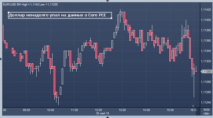 Доллар США слабо негативно отреагировал на отчет, который показал, что базовый PCE США за 1 квартал был пересмотрен вниз, а оптовые запасы выросли в апреле. Курс доллара незначительно падал после данных. EUR/USD рос на 0.1% до ~ 1.1139 против ~ 1.1136 перед выходом показателей в США, в то время как USD/JPY немного отступал к ~ 109.67. ВВП за 1 квартал вырос на 3.1% против прогноза 3.0% и первой оценки 3.2%; базовая PCE вырос на 1.0% в годовом исчислении против + 1.3% ранее и такого же прогноза; оптовые запасы выросли на 0.7%м/м против роста на 0.1% ранее.