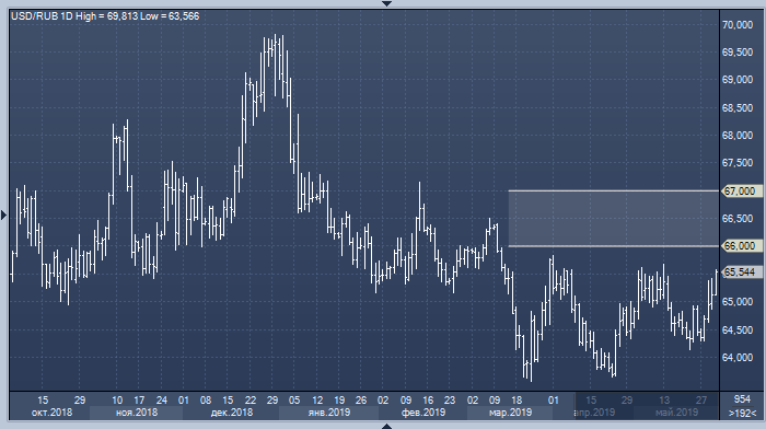 Дальнейшее обострение торгового конфликта между США и Китаем, а также появление новых сигналов о замедлении мировой экономики окажет давление на валюты развивающихся стран. Вместе с ними, вероятно, подешевеет и рубль, однако продажа валюты экспортерами позволит ему выглядеть лучше аналогов. В любом случае курс доллара к рублю в ближайшие месяцы вряд ли поднимается выше 66-67, прогнозируют эксперты Сбербанка.