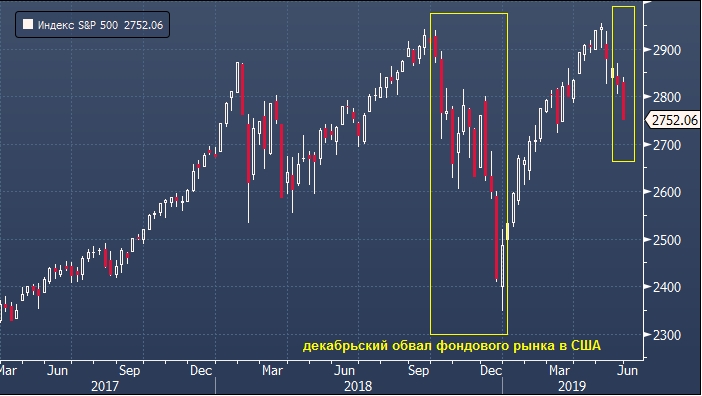 Торговая неделя завершилась существенным падением фондовых рынков. Американский индекс широкого рынка S&P 500 снижается 2 недели подряд. Инвесторы переоценивают свои более ранние ожидания относительно скоротечности торговых прений США и Китая и теперь закладываются на то, что торговая война будет более длительной и более жестокой.