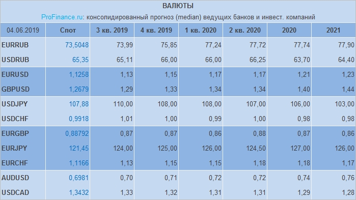 - Прогноз по евро к рублю на 3 кв 2019: было в майском прогнозе - 74.60, стало в июньском прогнозе - 73.99
