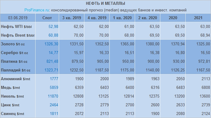 В мае цена на 3 квартал прогнозировалась на уровне $70.00 за баррель. Сейчас (начало июня) консенсус также подразумевает $70 за баррель по итогам 3 четверти 2019 года.