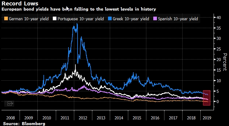 Регулятор в четверг проведет очередное заседание по вопросам монетарной политики, в то время как доходности бондов в Европе обновляют рекордные минимумы на фоне роста опасений по поводу замедления мировой экономикииз-за торговой войны. В этих условиях инвесторам ничего не остается, как ждать новых сигналов к ослаблению ДКП и, конечно же, подробностей о следующем раунде дешевых банковских кредитов в рамках программы TLTRO, который стартует в сентябре. Если регулятор хочет сохранить доверие рынка, он должен дать понять, что изучает возможность более решительных действий, таких как новый раунд количественного смягчения, пишет Bloomberg.