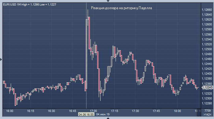 Глава Федеральной резервной системы Джером Пауэлл заявил, что центробанк готов «действовать в подходящей манере, чтобы поддержать экспансию» экономики. Он обратил внимание на сильный рынок труда и близость инфляции к цели в 2%, но в то же время указал на эскалацию торговых войн. «Мы не знаем как и когда эти проблемы будут решены», — заявил Пауэлл в ходе конференции ФРБ Чикаго. «Мы внимательно следим за последствиями эти событий для перспектив экономики США.