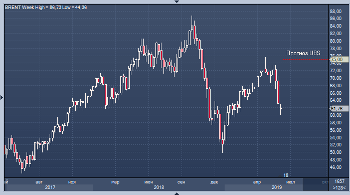 В UBS ожидают, что в течение трех месяцев нефть марки брент вновь окажется около $75 за баррель. Вместе с тем в банке признают, что более отдаленные перспективы теперь выглядят не столь позитивными. В UBS теперь полагают, что рост предложения со стороны стран, не входящих в ОПЕК, в 2020 опередит темпы роста спроса, и сообщают о снижении 6-месячного прогноза с $75 до $70 и 12-месячного с $70 до $67 за баррель.